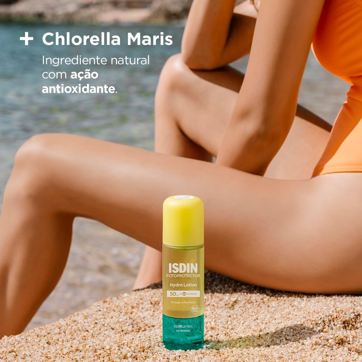 O ISDIN HydroLotion é um protetor solar corporal bifásico com FPS 50+, desenvolvido para proteger e revitalizar a pele exposta ao sol. Sua fórmula contém Chlorella Maris, um ativo antioxidante que ajuda a prevenir a oxidação da pele induzida pela radiação solar. Além disso, possui tecnologia Sepitonic™, que promove a oxigenação celular, contribuindo para a regeneração e revitalização da pele.